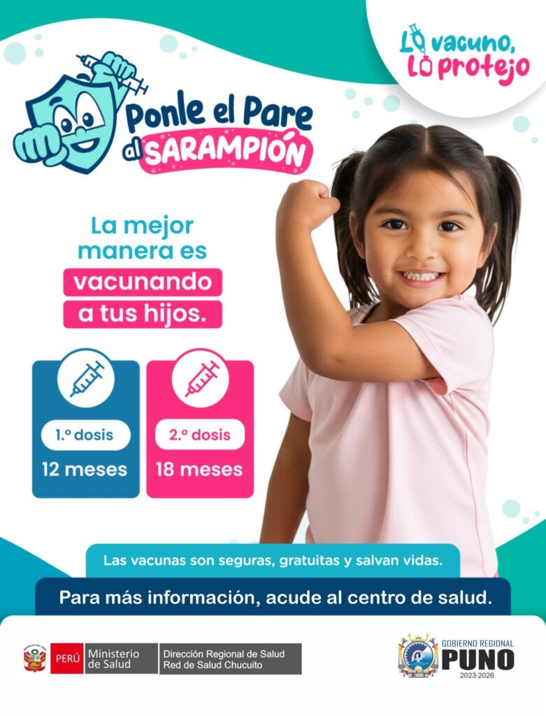 Se comunica a los directores de las instituciones educativas del nivel inicial, primaria, secundaria, EBA y EBE del ámbito de la UGEL Chucuito, que en mérito al OFICIO N° 259-2026-SP/PP PROMS-RED-SALUD CHUCUITO-JULI y OFICIO MULTIPLE N° 234-2026-GRP/GRDS/DREP/DGP/EI, y Alerta Epidemiológica N° 005-2026, emitida por el Centro Nacional de Epidemiologia, Prevención y Control de Enfermedades y Alerta Epidemiológica N° 02-2026 DIRESA Puno; que dan cuenta del riesgo inminente de transmisión de sarampión en Puno, cumplir con las siguientes recomendaciones: